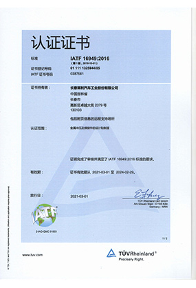 IATF 16949 認(rèn)證證書(shū)
