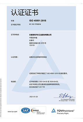 ISO 45001 認(rèn)證證書(shū)