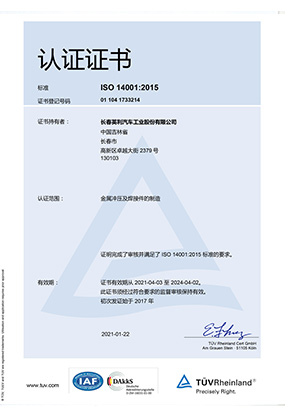 ISO 14001 認(rèn)證證書(shū)